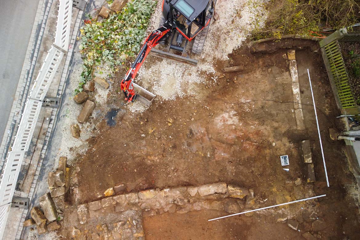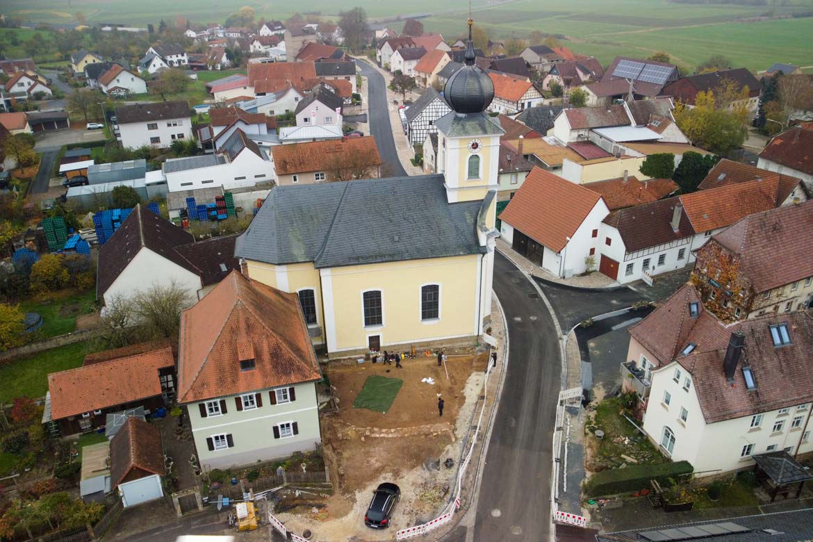 10-11/2024: Baubegleitende Beobachtung von Erdarbeiten und Archäologische Ausgrabung im Rahmen der Dorferneuerung (Amt für ländliche Entwicklung Oberfranken) sakrale Baubefunde des späten Mittelalters (Wolfgangskapelle) und neuzeitliche Bestattungen im Bereich der Pfarrkirche St. Wolfgang