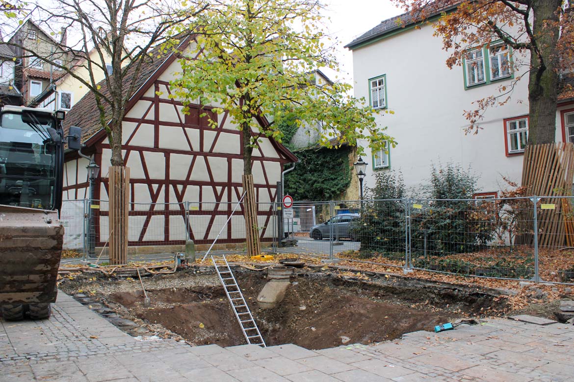 10-11/2024: Baubegleitende Beobachtung von Erdarbeiten und Archäologische Ausgrabung im Rahmen der Dorferneuerung (Amt für ländliche Entwicklung Oberfranken) sakrale Baubefunde des späten Mittelalters (Wolfgangskapelle) und neuzeitliche Bestattungen im Bereich der Pfarrkirche St. Wolfgang